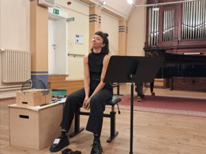 There were a lot of new works performed, and many had the composers present! This particular piece, by Rei Munakata and played by Mar Sala Romagosa, had extra “instruments” that all fit into a carry on bag: