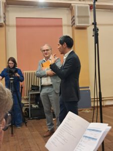 The evening continued with a marvelous performance from “Les Kickeuses”. The flutist Juliette Ferreira, having already impressed us with her performance of the contemporary work “Pièce” by Fanny Libert, was now singing and playing folk music with her accordionist by memory!